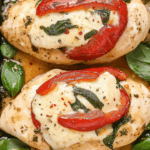 If you’re looking for a dish that combines vibrant flavors with simple preparation, then you’ve come to the right place! My Roasted Red Pepper, Spinach, and Mozzarella Stuffed Chicken is a delightful creation that has quickly become a favorite in our home. The juicy chicken breasts are stuffed with sweet roasted red peppers, fresh spinach, and gooey mozzarella cheese, making every bite a burst of flavor. It’s perfect for those busy weeknights or family gatherings when comfort food is a must.